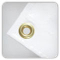Grommets are round, metal hole reinforcements. They are a convenient addition to use for mounting your printed piece. Grommets are available in 2 or 4 corners or placed every two feet for larger printed pieces.